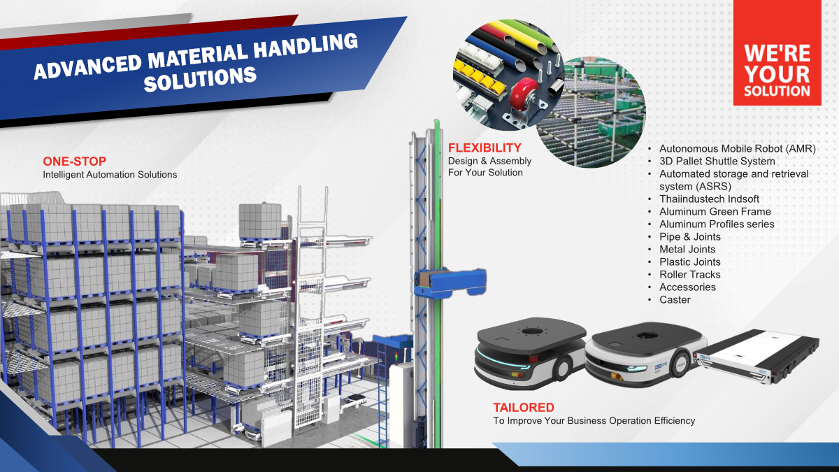 ADVANCED MATERIAL HANDLING SOLUTIONS ADVANCED MATERIAL HANDLING SOLUTIONS Pipe & Joint Assembly and Applications Autonomous Mobile Robot (AMR) 3D Pallet shuttle system Automated storage and retrieval system (ASRS)